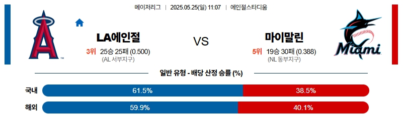 5월 25일 MLB LA에인절스 VS 마이애미 분석