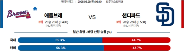 5월 26일 MLB 애틀랜타 VS 샌디에이고 분석