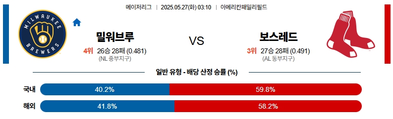 5월 27일 MLB 밀워카 VS 보스턴 분석