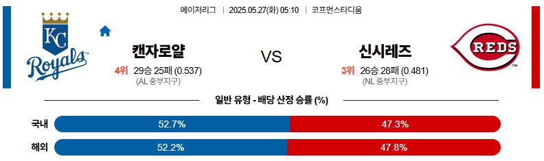 5월 27일 MLB 캔자스시티 VS 신시내티 분석