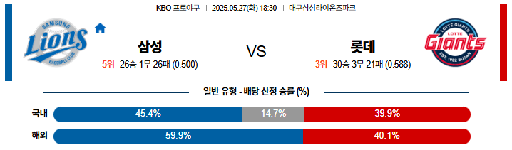 05월 27일 KBO 삼성 롯데 분석