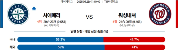 5월 28일 MLB 시애틀 VS 워싱턴 분석