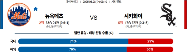 5월 28일 MLB 뉴욕메츠 VS 시카고 화이트삭스 분석