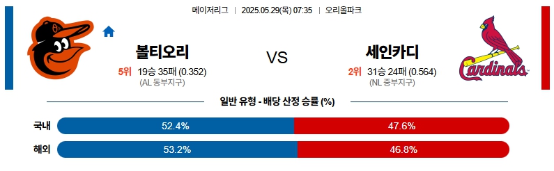 5월 29일 MLB 볼티모어 VS 세인트루이스 분석