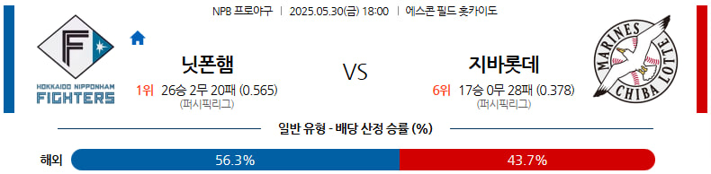 05월 30일 NPB 니혼햄 지바롯데 분석