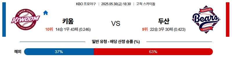 05월 30일 KBO 키움 두산 분석