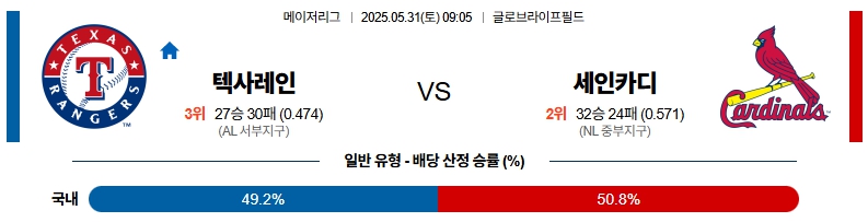 5월 31일 MLB 텍사스 VS 세인트루이스 분석