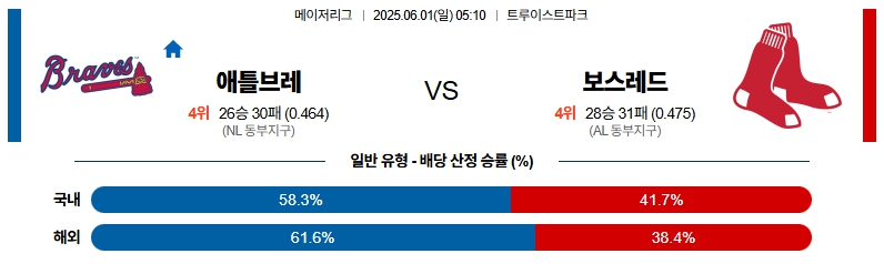 6월 1일 MLB 애틀랜타 VS 보스턴 분석