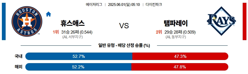 6월 1일 MLB 휴스턴 VS 템파베이 분석