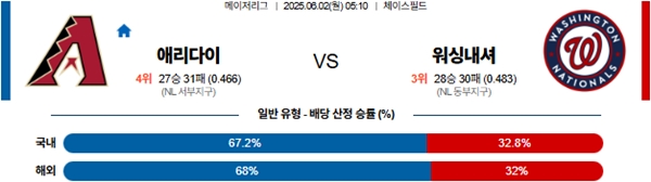 6월 2일 MLB 애리조나 VS 워싱턴 분석