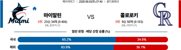 6월 3일 MLB 마이애미 VS 콜로라도 분석