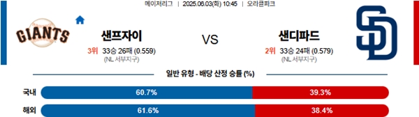 6월 3일 MLB 샌프란시스코 VS 샌디에이고 분석
