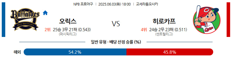 06월 03일 NPB 오릭스 히로시마 분석