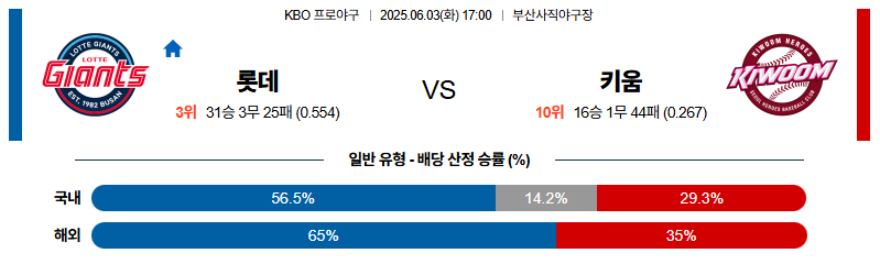 06월 03일 KBO 롯데 키움 분석