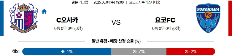 6월 4일 【 일본YBC르방컵 】 세레소 오사카 vs 요코하마 FC 분석
