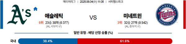 6월 4일 MLB 애슬레틱 VS 미네소타 분석