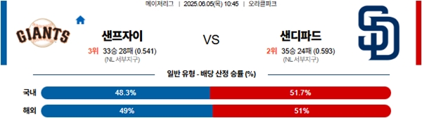 6월 5일 MLB 샌프란시스코 VS 샌디에이고 분석