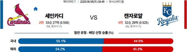 6월 5일 MLB 세인트루이스 VS 캔자스시티 분석
