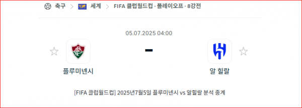 FIFA 클럽 월드컵 8강전】07월05일 플루미넨시 vs 알힐랄 FIFA 클럽 월드컵 생중계