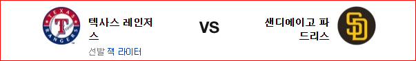 텍사스의 타격이 살아나기 시작했다. 이번 경기에서 샌디에고가 하트를 올릴지 왈드론이 나올지 다른 투수가 나올지는 결정이 되지 않았지만 텍사스의 화력을 막는건 쉽지 않을듯. 락커와 코빈 상대로 고전한 샌디에고 타선이 라이터를 공략하는건 쉽지 않다. 그리고 텍사스의 불펜은 어찌됐든 보기보다 쓸만하다. 힘에서 앞선 텍사스 레인저스가 승리를 가져갈 것이다.