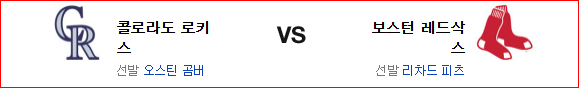 보스턴이 원정 시리즈를 스윕해냈다. 데버스는 없지만 경기력 자체는 좋은 편이고 홈이라는 강점도 있는 편. 직전 경기에서 콜로라도는 연패를 끊고 감버가 원정에서 강한 투수라는건 부인의 여지가 없지만 이동 피로도도 높고 산 아래라는 점도 문제다. 결국 후반에 승부가 갈릴 것이다. 홈의 잇점을 가진 보스턴 레드삭스가 승리를 가져갈 것이다.