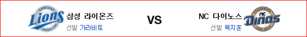 NC : 목지훈(3승 4패 5.36)이 시즌 4승 도전에 나선다. 2일 한화 원정에서 5이닝 무실점의 호투로 승리를 거둔 목지훈은 최근 2번의 선발에서 11이닝 무실점의 호투를 이어가는 중이다. 다만 홈에서의 투구는 기복이 심하다는 문제가 있고 삼성 상대로 원정에서 두번이나 호되게 당했다는 점이 이번 경기의 불안 요소일 것이다.
