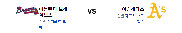 최근의 애틀랜타는 상당한 득점력 빈곤에 시달리고 있다. 스프링스를 공략할 가능성은 상당히 낮다고 해야 할 정도. 반면 애슬레틱스 타선은 어찌됐든 홈에서 한번 터질 능력이 있고 무엇보다 푸엔테스의 투구는 기대할수가 없다. 애틀랜타가 빠르게 백기를 들수도 있다. 선발에서 앞선 애슬레틱스가 완승을 가져갈 것이다.