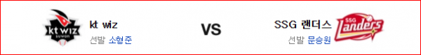 KT : 소형준(6승 2패 2.99)이 시즌 7승에 도전한다. 2일 키움과 홈 경기에서 6.1이닝 1실점의 호투로 승리를 거둔 소형준은 최근 3경기 연속 투구 내용이 좋아져 간다는 점이 고무적이다. SSG 상대로 홈에서 13이닝 3실점으로 투구가 좋은 편인데 최근 홈보다 원정 투구가 좋지 않다는 변수는 있다.