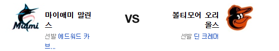 기세만 놓고 본다면 확실하게 우위에 있는건 볼티모어다. 그리고 마이애미는 이동의 피로도 무시할수 없는 레벨. 그렇지만 크레이머는 한번 흔들리면 계속 흔들리는 타입의 투수고 카브레라의 투구는 이전에 비해 분명히 좋아졌다. 그리고 의외로 마이애미의 불펜은 단단하다는게 승부를 가를 것이다. 투수력에서 앞선 마이애미 말린스가 승리를 가져갈 것이다.