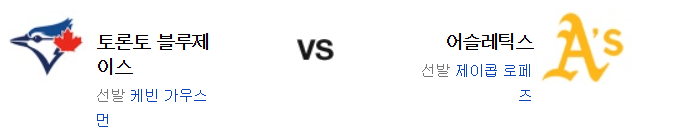 애슬레틱스는 제이콥 로페즈(2승 5패 4.26)가 시즌 3승 도전에 나선다. 7일 샌프란시스코와 홈 경기에서 4.1이닝 4실점의 부진으로 패배를 당한 로페즈는 우타자들 상대로 완전히 당해버린게 컸다. 즉, 상대를 꽤 가리는 편인데 문제는 토론토는 강력한 우타자가 대단히 많다는 점이다. 전날 경기에서 서져와 호프만 상대로 홈런 3발 포함 6점을 올린 애슬레틱스의 타선은 막판 추격이 실패한게 아쉬움으로 남았다. 홈런으로만 4점이 나온것처럼 홈런 외의 다른 루트가 필요할 것이다. 마지막 4이닝을 비도가 무실점으로 막아준건 다행일 것이다.