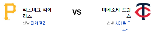 이번 시리에서도 피츠버그의 타선은 전혀 살아나지 못하고 있다. 특히 전날 미네소타의 투수진 공략 실패는 시사하는 바가 크다. 켈러의 투구는 금년 원정에서도 기대를 걸기에 부족함이 없는게 사실이지만 타선이 전혀 받쳐주질 못하고 있고 이는 불펜도 매한가지다. 그리고 우즈 리차드슨은 최근 2달간 홈 한정으론 대단히 위협적이다. 전력에서 앞선 미네소타 트윈스가 승리를 가져갈 것이다.