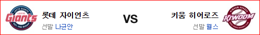롯데의 후반기 출발이 좋지 않다. 특히 좌완 투수에게 약한 문제는 해결되지 않고 있기 때문에 웰스 공략이 쉽지 않을듯. 반면 키움은 패배하긴 했어도 대구에서 위력적인 모습을 보여주었고 좌타자에게 약한 나균안에겐 힘든 경기가 될 가능성이 높다. 불펜 변수가 있지만 후반기의 롯데는 막판이 그다지 좋은 편이 아니다. 선발에서 앞선 키움이 신승을 가져갈 것이다.