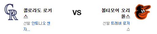 전날 경기에서 양 팀 모두 장타력으로 승부를 봤고 결과는 콜로라도의 신승이었다. 그러나 전체적인 안타수를 본다고 하면 볼티모어가 우위에 있었음을 부인할수는 없을듯. 로저스는 홈 경기에 강점이 있고 콜로라도는 좌완 상대로 타격이 그다지 좋은 팀은 아니다. 결국 센자텔라가 잘 버텨줘야 하지만 센자텔라는 원정에서 기대를 하면 안되는 투수다. 그러나 타오르기 시작한 콜로라도 타선 역시 경계해야 한다. 볼티모어가 신승을 가져갈 것이다.