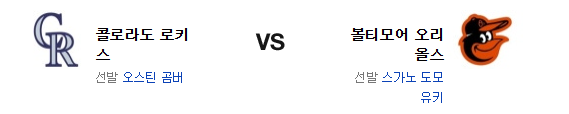 볼티모어 오리올스는 스가노 토모유키(7승 5패 4.54)가 시즌 8승 도전에 나선다. 22일 클리블랜드 원정에서 3.2이닝 4실점의 부진한 투구를 보여준 스가노는 최근 홈과 원정의 온도차가 엄청난 편. 차라리 홈에서의 스가노는 QS라도 기대할수 있는 투수라는 점이 이번 경기의 포인트라고 할수 있다. 전날 경기에서 콜로라도의 투수진을 대파하면서 홈런 3발 포함 무려 18점을 올린 볼티모어의 타선은 홈 경기에서 완벽한 부활을 이뤄냈다고 해도 좋을 듯. 특히 막판 3이닝 12득점은 주목 포인트. 2이닝을 1안타 무실점으로 막은 불펜은 승리조 재편이 필요할 것이다.