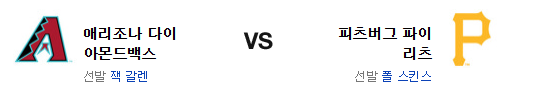 애리조나 다이아몬드백스는 잭 갤런(7승 11패 5.58)이 시즌 8승에 도전한다. 22일 휴스턴과 홈 경기에서 6이닝 6실점의 부진으로 패배를 당한 갤런은 2경기 연속 6실점이라는 심각한 부진이 이어지고 있는 중이다. 특히 원정에서 무너졌다는 점은 절대로 좋은 소식이 아닐 것이다. 전날 경기에서 히니와 피츠버그 불펜 공략에 실패하면서 4안타 완봉패를 당한 애리조나의 타선은 이번 원정 시리즈의 부진이 심해도 너무 심한 편이다. 조쉬 네일러의 트레이드 이탈 이후 타선의 집중력이 급감해버린 모습이 역력한 편. 1.1이닝을 무실점으로 막아낸 불펜은 나름대로 제 몫은 해냈다.