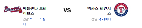 전날 경기에서 애틀랜타는 다 이긴 경기를 날려버렸다고 해도 과언이 아니다. 특히 이글레시아스가 무너진건 치명적인 부분. 라이터는 락커보다는 홈에서 더 안정적인 투수고 전날 텍사스는 불펜의 소모를 최대한 아끼는데 성공했다. 물론 엘더의 투구는 원정에서 더 강하긴 하지만 이 팀의 불펜은 신뢰할수 없다. 홈의 잇점을 가진 텍사스 레인저스가 신승을 가져갈 것이다.