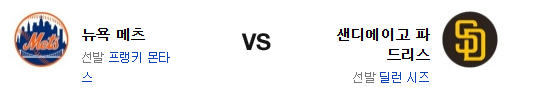 샌디에고는 타선의 기복이 상당히 심한 편이다. 몬타스 상대로 좋은 모습을 보여주긴 쉽지 않을듯. 시즈 역시 기복이 심하지만 홈에서 좋긴 한데 이번 경기 후 트레이드 가능성도 있다. 이번 경기에서 메츠는 마무리 디아즈를 쓸수 없긴 하지만 승리조 두어명은 남겨둔 상태고 샌디에고 타선은 이동 후 득점력이 좋지 않은 편이다. 힘에서 앞선 뉴욕 메츠가 신승을 가져갈 것이다.