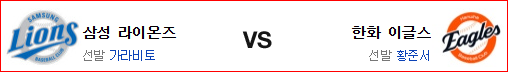 한화가 지난주 브레이크가 걸렸다고는 하지만 삼성은 그야말로 충격적인 패배를 당했다. 이 문제는 이번 시리즈 내내 이어질수 있을듯. 좌완에게 아쉬운 삼성 특성상 황준서 공략은 쉽지 않고 강속구에 약점을 드러낸 한화 특성상 가라비토 공략 난이도가 높을 것이다. 이번 경기는 결국 후반이 관건인데 삼성이 후반에 힘을 낼거라는 기대를 하기 어렵다. 불펜에서 앞선 한화가 승리를 가져갈 것이다.