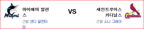 세인트루이스가 반등에 성공한 반면 마이애미의 타선은 홈에서 부진했던 팔란테를 공략하지 못했다. 이는 그레이 상대로도 문제가 되기에 충분한 부분. 물론 카브레라의 투구를 고려한다면 알칸타라도 나름 제 몫은 해낼수 있겠지만 최근 마이애미의 불펜이 흔들린다는 점이 승부를 가를 것이다. 후반에 강한 세인트루이스 카디널스가 승리를 가져갈 것이다.