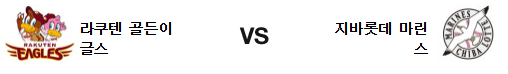 이시카와의 뜻밖의 부진은 경기를 초반에 끝내버렸다. 7:1 경기를 8:5까지 쫓아간 타자들이 대단하게 느껴질 정도. 양 팀 모두 타격감은 좋은 편이지만 라쿠텐은 좌완 상대 타격이 그다지 좋지 않고 새먼스는 도쿄돔에서 라쿠텐 상대로 좋은 기억이 있는 투수다. 물론 쇼지의 투구는 기대를 걸 여지가 있지만 돔구장과 잘 맞지 않는 궁합을 극복하는게 쉽지 않아 보인다. 선발에서 앞선 치바 롯데 마린스가 승리를 가져갈 것이다.