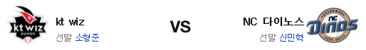 KT는 주중 시리즈에서 타격이 숨을 죽였고 NC는 투수진이 흔들려버렸다. 두 팀 모두 최근 고민은 확실한 셈. 하지만 KT는 LG의 투수진을 상대하고 왔다는 점을 잊어선 안되고 NC는 라이벌전 패배가 문제다. 양 팀 모두 최근 후반이 변수인데 그 전에 선발에선 KT가 우위를 점유하고 있고 결국 이 점이 승부를 가를 것이다. 선발에서 앞선 KT가 승리를 가져갈 것이다.