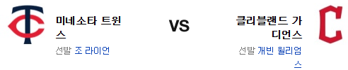 윌리엄스는 야간 경기 약점이 명확한 투수고 라이언은 직전 등판의 부진이 문제다. 선발 대결은 좋지 않은 방향으로 팽팽할듯. 그러나 후반으로 갈수록 불펜의 차이는 커질수 밖에 없고 미네소타는 현재 제대로 된 마무리가 없다. 후반에 강한 클리블랜드 가디언즈가 승리를 가져갈 것이다.