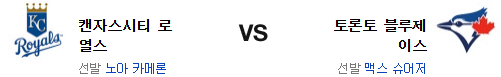 전날 경기는 양 팀의 선발 투수에 의해 승패가 갈려버린 경기였다. 이번 경기 역시 선발 투수의 역할이 매우 중요할듯. 그러나 전날 경기를 고려한다면 서져의 부진 가능성이 높은 편. 카메론은 원정 투구가 아쉽고 토론토의 타선은 좌완에게 강점이 있는게 사실이지만 전날의 부진이 문제다. 그리고 후반에서 불펜의 우위를 가지고 있는건 현재로선 캔자스시티다. 투수력에서 앞선 캔자스시티 로얄스가 신승을 가져갈 것이다.