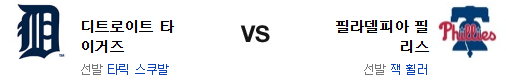 전날 경기는 트레이드 데드라인의 손익 계산서가 바로 나와버린 경기였다. 이번 경기는 그 후유증이 이어지느냐가 관건일듯. 윌러가 낮 경기에 약하긴 하지만 홈이라는 변수가 있고 스쿠발은 그야말로 지구 최강 투수다. 선발에서 디트로이트가 우위에 있긴 하지만 불펜의 차이가 있고 결국 이 점이 승부를 가를 것이다. 후반에 강한 필라델피아 필리스가 신승을 가져갈 것이다.