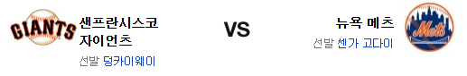 친정팀 상대로 첫 등판을 한 부토가 선물을 안겨주었지만 메츠는 승리를 가져가지 못했다. 일단 메츠가 첫 경기에서 불펜이 흔들린건 변수가 될수 있을듯. 그러나 센가는 홈과 원정의 차이가 분명히 있는 투수고 카 웨이 텡에게 메이저리그 급 투구를 기대하는건 어렵다. 선발에서 앞선 뉴욕 메츠가 승리를 가져갈 것이다.