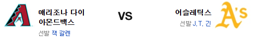 최근 애리조나의 퍼포먼스 레벨은 리그 최악이라는 표현이 잘 어울린다. 그만큼 트레이드의 여파를 정통으로 맞고 있는 중. 현재의 타격으로 진 공략은 쉽지 않을 것이다. 물론 애슬레틱스의 타선이 전날 아쉬운 모습을 보여주긴 했지만 금년의 갤런은 최악의 갤런이고 원정에서 기대가 되지 않는다. 힘에서 앞선 애슬레틱스가 승리를 가져갈 것이다.