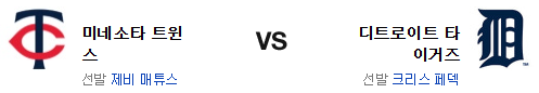 전날 경기의 미네소타는 5회까지만 잘 하는 팀의 전형을 유감없이 보여주었다. 이번 경기 역시 그 점이 그대로 이어질듯. 아무래도 패덱은 친정팀이라는 변수가 있지만 매튜스는 원정에서 기대를 하면 안되는 상황. 후반이 변수겠지만 뒤로 갈수록 유리한건 디트로이트다. 전력에서 앞선 디트로이트 타이거즈가 승리를 가져갈 것이다.