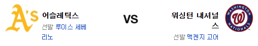 워싱턴의 타선은 기복이 심하다. 원정에서 강한 세베리노 공략은 쉽지 않을듯. 고어가 얼마나 버텨줄수 있느냐지만 애슬레틱스 타선은 좌완 상대로 나쁘지 않고 원정에서 타격 역시 기대를 걸만 하다. 양 팀 모두 불펜이 아쉽긴 하지만 그래도 이쪽도 애슬레틱스가 더 나은 편. 상성에서 앞선 애슬레틱스가 승리를 가져갈 것이다.