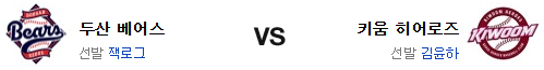 키움의 기세가 무섭다. 물론 불펜의 문제가 심각하긴 하지만 3경기 연속 후반에 대폭발하면서 시리즈를 스윕한건 무시할수 없는 부분. 두산 역시 불펜이 좋지 않기 때문에 이 점은 이번 경기의 중요 변수가 된다. 로그의 투구는 키움의 좌타 라인을 막을수 있지만 카디네스와 임지열이라는 변수가 있고 김윤하는 홈에서 조금씩 살아나는 중이다. 힘에서 앞선 키움이 신승을 가져갈 것이다.