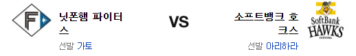 닛폰햄 파이터스는 카토 타카유키(7승 4패 2.85)가 시즌 8승에 도전한다. 1일 오릭스 원정에서 8.1이닝 4실점의 투구로 아쉬운 패배를 당한 카토는 8회까지 무실점 투구를 하다가 9회말에 괜히 올라갔다가 4실점으로 무너져버렸다. 7월 2일 소프트뱅크 원정에서 8.1이닝 2실점 패배를 당하는등 소프트뱅크 상대로 투구 내용은 좋은 투수라는 점에 승부를 걸어야 한다. 목요일 경기에서 이마이 공략에 실패하면서 2안타 완봉패를 당한 닛폰햄의 타선은 앞선 2경기의 호조를 단숨에 날려버렸다는게 문제다. 특히 2개의 안타에 13삼진이라는 점은 심각한 요소가 될수 있다. 2.2이닝동안 2실점을 허용한 불펜은 정말로 비상이 걸릴수 있다.